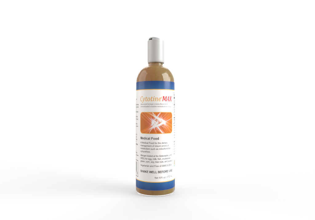 Cytotine® MAX is a liposomal creatine monohydrate-based liquid Medical Food designed to increase energy. Cytotine® MAX improves adenosine triphosphate (ATP) production (energy production) in the human body. Cytotine® MAX is converted in the body to Phosphocreatine, an anaerobic precursor to ATP. This medical food generates extra energy (ATP) in individuals with mitochondrial disorders along the most important metabolic pathway in the electron transport chain (ETC).